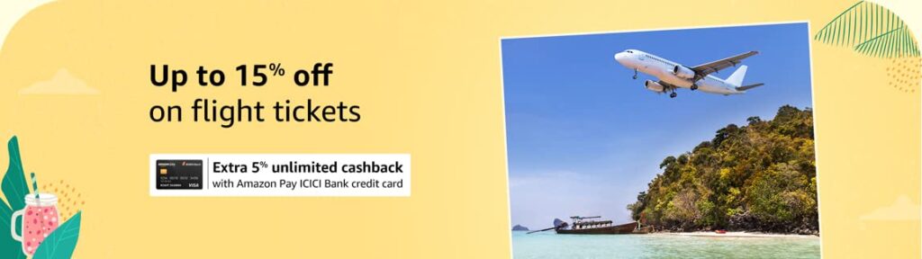 Get Up to 15% OFF on Flight Booking. Extra Up to 5% Cashback on Amazon Pay ICICI Credit Card.