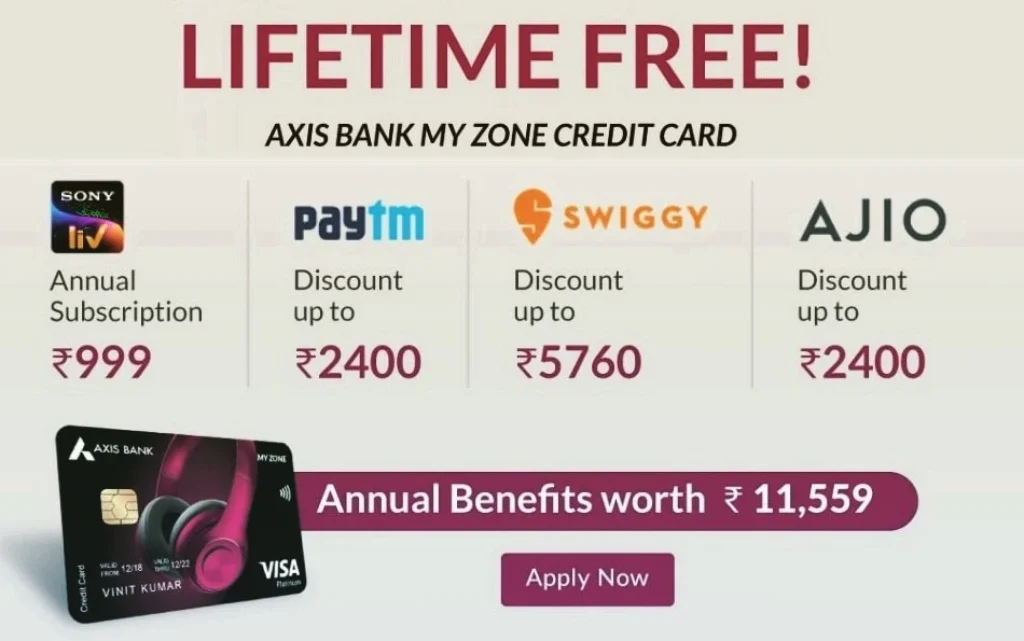 myzone credit card by axis bank – buy one get one free on movie tickets. up to ₹1000 off on ajio. flat ₹120 off on swiggy. apply now!