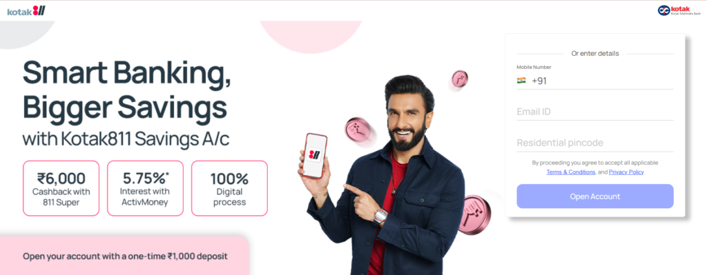 - A 100% digital savings account from Kotak Mahindra Bank that can be opened online in a few minutes using Aadhaar and PAN, with video KYC to complete full access.